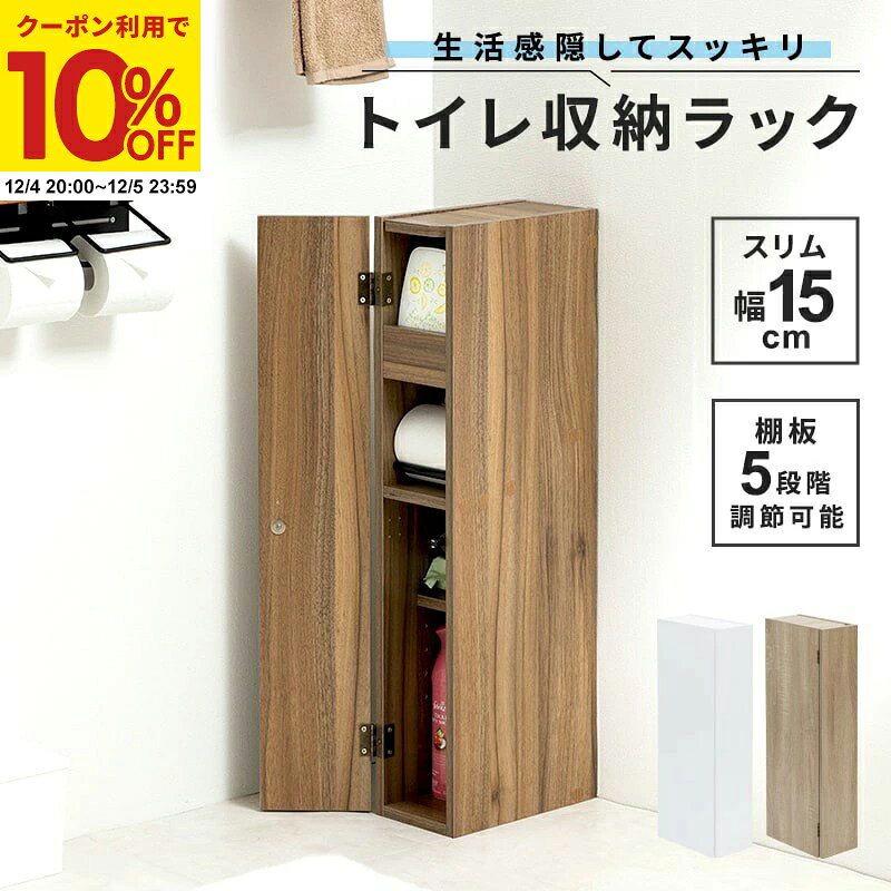 【クーポンで10%OFF★12/4 20:00〜12/5 23:59】 スリム 幅15cm トイレラック トイレットペーパー収納 隙間収納 トイレ 収納 トイレ用品 掃除用具収納 ラック 薄型 サニタリー収納 おしゃれ