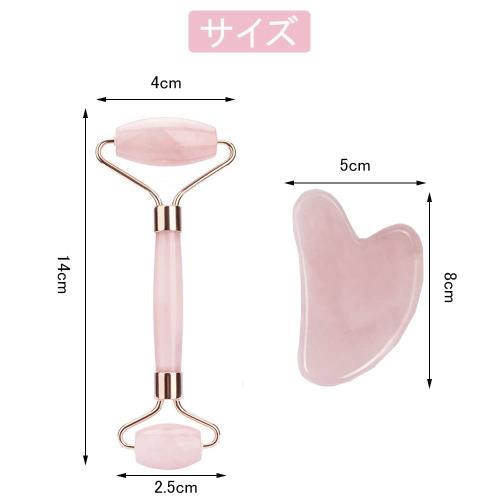 サイズマッサージローラー:15cm*4.4cm*2.5cm。かっさプレート:5.5cm*8.5cm。 素材100%天然のローズクオーツを採用し、人体に有益な微量元素を多く含みます。しわ防止、老化防止、目の下の暗さを軽減など、肌と健康を改善することができます。 マッサージローラー両端のローラーは大きさと形状が異なり、顔のさまざまな部分に適しており、効果的にアンチエイジングができます。血行やリンパの排出を促し、肌を引き締めます。 かっさプレートかっさプレートの滑らかな表面とハートの形は、全身の部位で使用できます。肩、背中、太もも、腕のマッサージに最適です。筋肉がリラックスし、休息して楽しむことができます。 豪華なギフトセット 天然石を使用しているため、模様には個々の違いがあります。 ロットによって、ピンク色は非常に薄く、白色に見えることもあります。 ご注文前にご了承ください。 天然石は衝撃を避ける必要があります。 配送過程はコントロールできませんが、商品が破損している場合はすぐにご連絡ください。