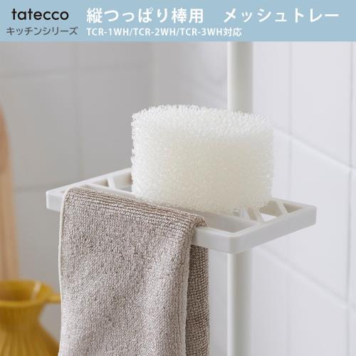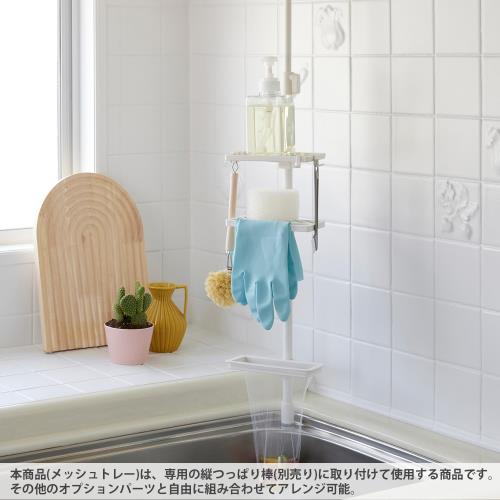 サイズ幅15×奥行8.5×高さ1cm※表示製品外寸法は取付部を除きます。耐荷重0.25kg本体重量42gカラーマットホワイト 材質〈本体・固定カバー〉PP〈滑り止め〉TPE タテだから すき間に置ける” 1本のつっぱり棒で、キッチンや洗面台にぴったりの収納スペースを作れる。 スペースを有効に使えて、見た目もすっきり。 tateccoシリーズの縦つっぱり棒48、70、110(別売)に取り付けて使用するメッシュトレー。シンクまわりの収納に便利。 アクセサリーは追加や取り外しが簡単で、水洗いも可能。高さも自由に調整できるので、どんなシーンでも使いやすい収納が叶う。