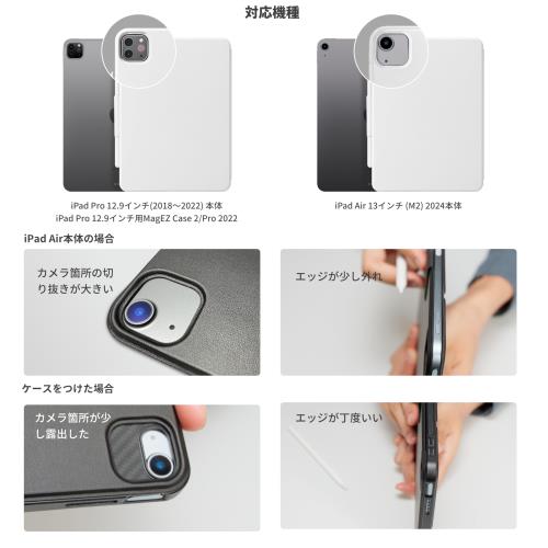 横/縦置き回転、倒れない縦置き横置きと縦置き両方を叶えるスタンド機能は使いやすくて便利です。三角形の抜群安定感により倒れなく使えます。折り紙のようにおることで角度は4つ選択でき、ネットサーフィンに動画鑑賞、勉強等の作業向けとスムーズに素早く切り替えられる。 対応機種iPad Pro 12.9インチ 2018-2022(第6/5/4/3世代)、iPad Air 13インチ M3 2025 第7世代、iPad Air 13インチ M2 2024 第6世代。※※ご注意: iPad Air 13インチのカメラは小さいため、Folio2を装着後に一部が空いて見えることがありますが、iPad Pro 12.9インチとサイズが近いため、機能的には問題なく使用していただけます。 強力な磁力で取り付けやすい強力なマグネットの適切な配置によって、ケースの有無にかかわらず、両面iPadカバーを磁力で無理なくiPad Pro/Airに装着し、しっかりと固定します。マグネット式でケースの張り付けが非常に行いやすいです。iPadその物の薄さ感を感じます。ケース自体が非常に軽量でマグネットが強力でずり落ちたり剥がれたりしません。 薄く軽量外出も気軽重さ325gでケースは薄くて軽くて作られております。市販の多くのフォリオよりも軽量です。iPadに余計な重さを増加しません。iPadをより簡単に、より快適に持ち運ぶことができます。 高級感漂うレザー保護性の高いプレミアムPUレザーまた、肌に優しく、傷のつきにくいポリウレタンレザーを使用しているため、優れたグリップ力を発揮し、使い心地いいです。こだわりの詰まったレザーは、きめが細かく美しい色合いが魅力です。しかも裏面はポリウレタンレザーで傷つきにくいし汚れも強いです。優れたグリップ力を発揮します。色合いと作りの良さが醸し出す落ち着いた風合いは様々な場面に馴染めます。一度使ったら手放せない。 内蔵式のApple Pencil用ストラップ隠されたマグネット式ペンシルストラップは、充電中のペンシルをしっかりと保持し、外出先での落下を防ぎます。ストラップを使用しない時は折りたたんで背面パネルに隠すことができ、iPadフォリオのミニマルでスマートなルックスを保ちます。