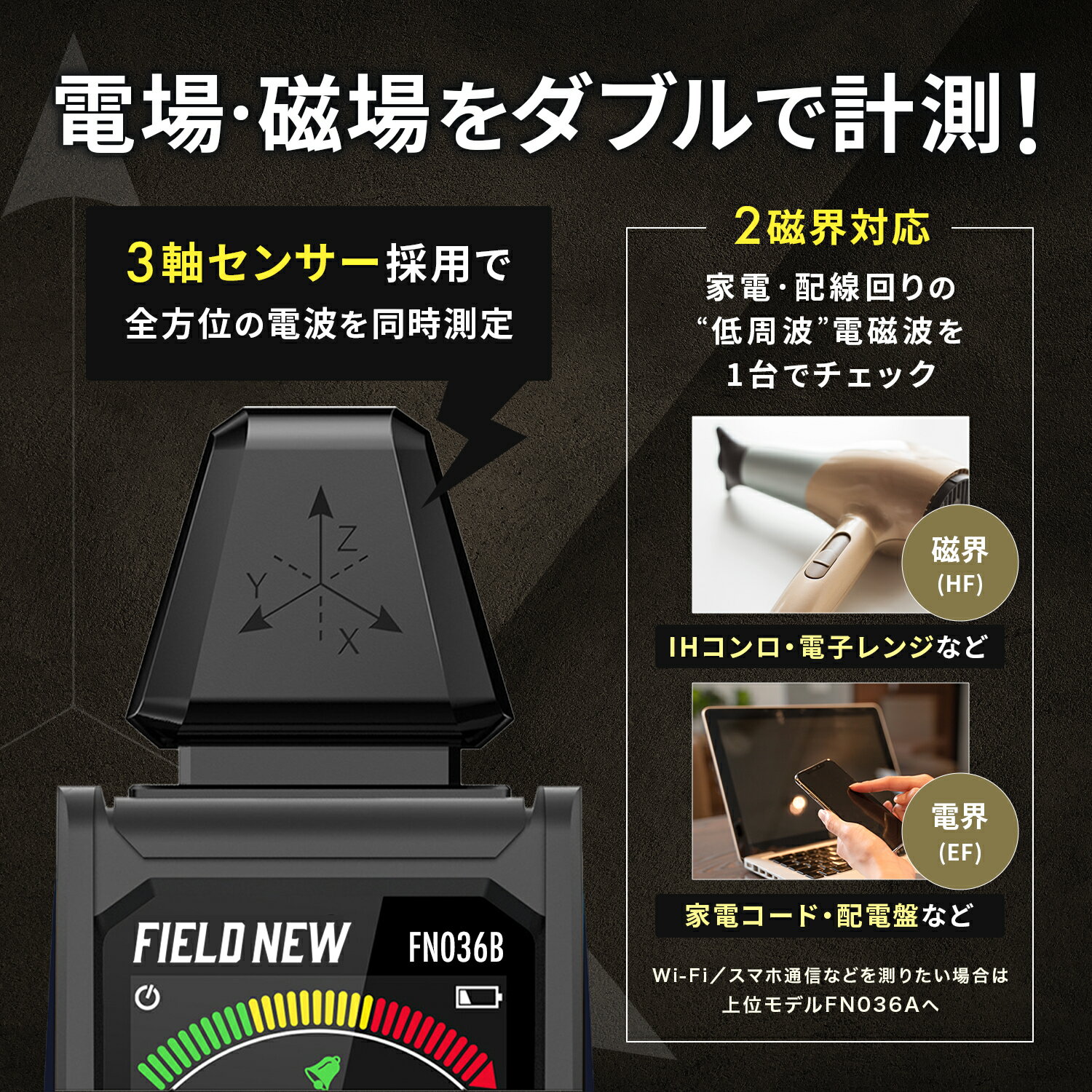 電磁波測定器 FieldNew 電界/磁界/温度/湿度 高精細VAディスプレイ Type-C充電 3軸センサー 保証書 日本語説明書/動画解説 電磁波計/磁場測定器/EMFメーター