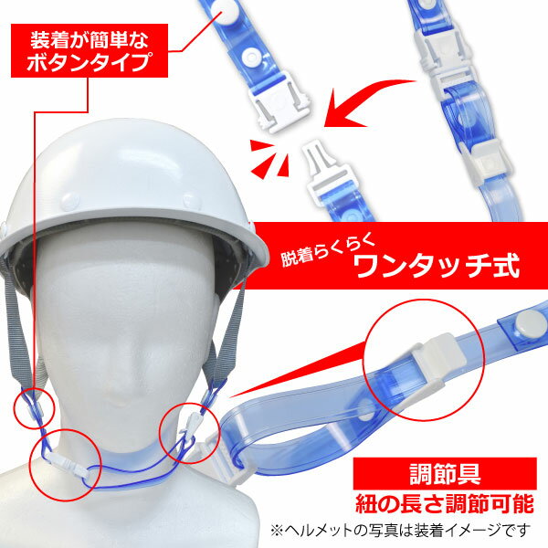 ☆ヘルメット用 透明あごひも ワンタッチ式 ●ボタンタイプ● 全7色 ≪ネコポスの場合8個まで可≫[209002]