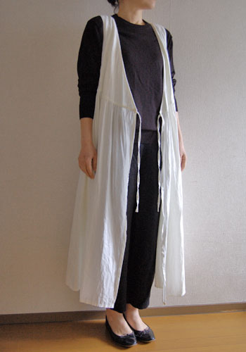 【発送について】 ・メール便をご利用頂けます。 ◆カシュクールデザインの、ロング丈ジレ型紙が 入荷しました! もちろんワンピースとしても着用できますが、 ベストのように重ねてスタイリングするのが 今の気分♪ ◆コーディネイト使用パターン ・2スタイルタックイージーパンツ型紙 ・コクーンキュロットパンツ型紙 ・【追加パーツ】コクーンキュロットパンツ型紙専用 バルーンシルエットパターン ■難易度 ★★☆☆☆ ◆参考用尺(1人分) ・表地 (128cm巾の場合)=約310cm ◆Size(cm) サイズ 着丈 胸囲 肩幅 スカート丈 M 116 88 32 80 L 116 94 33 80 ※着用モデルは身長160cmでMサイズを着用 しています。 ◆フロントスタイル ◆サイドスタイル ◆バッグスタイル ◆前衿ぐり部分 ◆後ろ衿ぐり部分 ◆カシュクールデザイン
