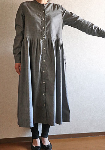 【商品について】 ・メール便をご利用頂けます。 ◆ウエスト切替下にタックをあしらった ワンピース型紙が入荷しました! 身頃はややタイトで、ウエスト切替位置を 上の方に設定し、切替下はタックでふんわりと させているので、スタイル良く見せて くれます。 スカート部分はギャザーでなくタックにする事で、 ふんわりしすぎず、甘すぎない印象に。 ワンピースとして着用はもちろん、 前を全開してコートのように着用しても かわいい♪ ◆コーディネイト使用パターン ・インに着たTシャツとジーンズはスタッフ私物 ◆参考用尺(1人分) ・表地(148cm巾以上の場合)=約280cm ・11.5mm巾ボタン=15個 ■難易度 ★★★☆☆ ◆Size(cm) サイズ 着丈 胸囲 肩幅 袖丈 ウエスト M 117 100+8(タック) 38 58 102 L 117 106+8(タック) 39 59 107 ※画像サンプルモデルは身長160cm、体重50キロで Mサイズを着用しています。 ◆フロントスタイル ◆サイドスタイル ◆バックスタイル ◆バンドカラー ◆ややタイトな身頃 ◆後ろタック部分 ◆脇ポケット部分 ◆袖口カフス部分