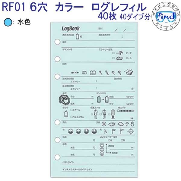 RF-01 【6穴】バインダー用 カラーレフィル(40枚入り) カラーが豊富 ログブック ダイビング ログレフィル RF01 楽天ランキング人気商品