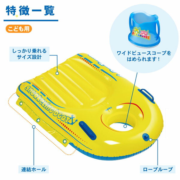●楽天ランキング入賞● 人気商品 RA0504 スノーケリングボード 海や水に慣れよう マスクもスノーケルも使わず 一緒に楽しく水中観察。 4-12歳 子供用 小柄なお子様がしっかり乗れるサイズ設計。 スノーケリングフロートに続くシリーズ第二弾 特に身長の低い小柄なお子様が スノーケリングフロートでは 遊びづらかった部分を解消し、しっかり乗れるように設計されています。 ●ヒモロープは付属しません ご使用時は スノーケリングベストを着用し 安全に遊びましょう。 【ワイドビュースコープ】 水に顔をつけるのが怖い小さなお子様やスノーケルでの呼吸が苦手な方 泳ぎが得意でない方も、水中の世界を楽しむことができます。 お子様の安全を考えて、レンズには耐衝撃に優れたポリカーボネートを採用。 特徴 ●レンズ面に突起があり、地面に置いた時に傷が付きにくい ●取っ手の上の穴にヒモを通せば、首から下げることができます。 *ヒモは付属しません サイズ:215mm×180mm×176mm 対象年齢:3才以上〜 最強配送 即日配送 幼児用 磯遊び リーフツアラー 水中スコープ のぞきめがね ノゾキメガネ 浮き輪 スノーケリング フロートJANコード:4983608126074 メーカー希望小売価格はメーカーカタログに基づいて掲載しています メーカー希望小売価格はメーカーカタログに基づいて掲載しています●楽天ランキング入賞● 人気商品 スノーケリングボートに ワイドビュースコープをセットした、 大人気の組み合わせです♪ スノーケリングの練習に最適なスノーケリングボートです。 ボートの中央部には、ワイドビュースコープを入れて水中をのぞくことができます。 ワイドビュースコープは 水に顔をつけるのが怖い小さなお子様でも、 水中の世界を楽しむことができます。 お子様の水中観察デビューに最適です。 また、泳げない、スノーケルで呼吸をするのが苦手な大人の方も、 顔を水につけずに、水中を見ることができます。 スノーケリングボートに ワイドビュースコープをセットした、 大人気の組み合わせです