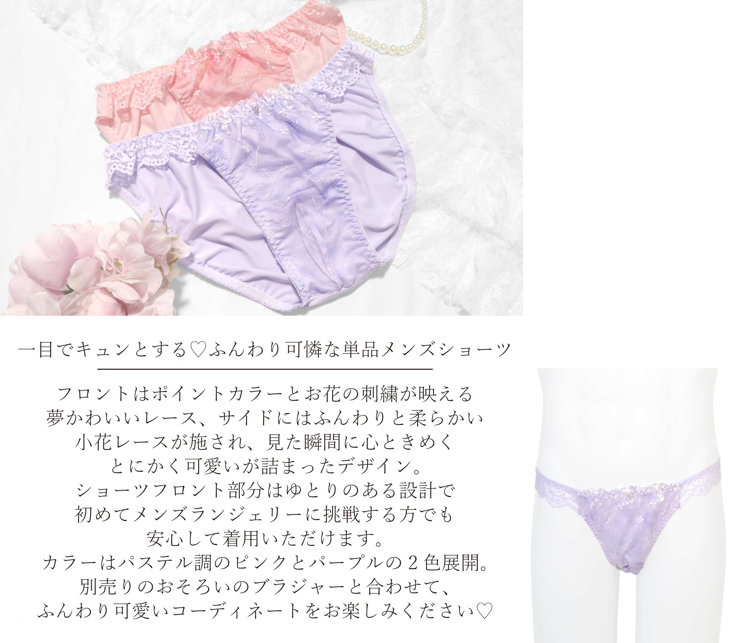 男性用 パンティ レース ユメカワ パステル M-4L メンズ 体型用 (JM-5272-S)[★メール便OK]【 M L LL 3L 4L 男性用ショーツ メンズショーツ 男性用下着 ジェンダーレス かわいい】