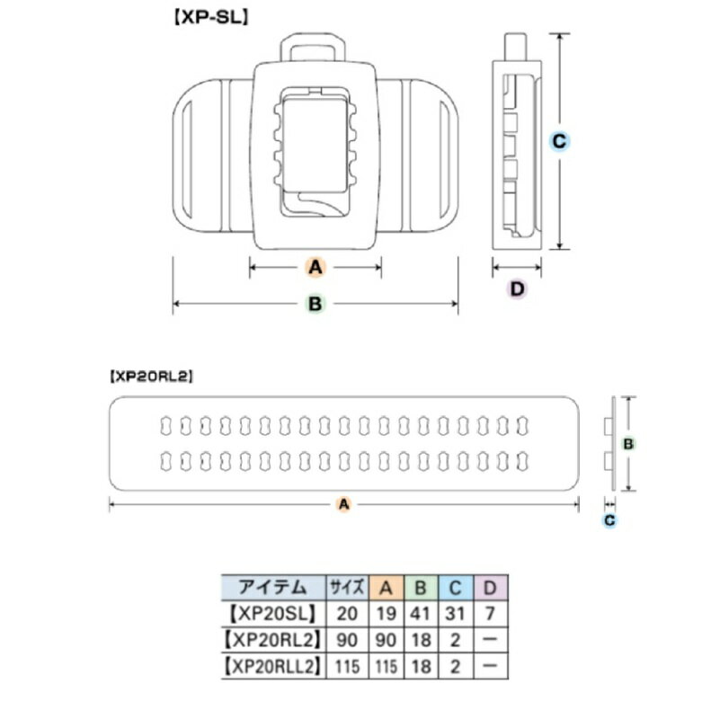 YKK XP20SL XP20 ベルト アジャスターバックルレールセット XP20SL XP20RL2 XP20RLL2 スライド式レール 90ミリ 115ミリ パーマロック パンツやスカート等のウエストサイズの調節に使用します 軽量 プラスチックバックル スライダー A00099