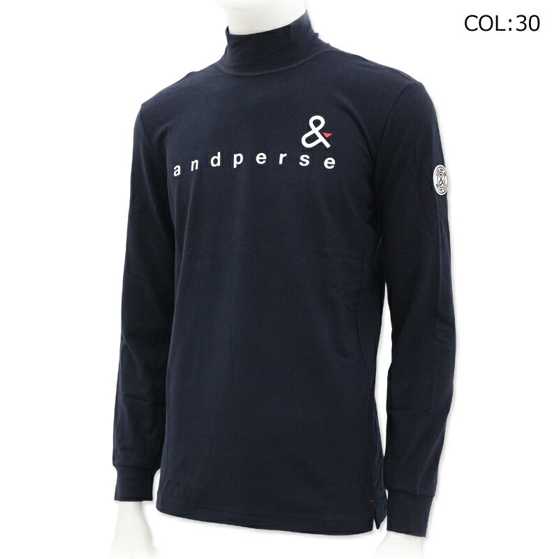アンパスィ and per se AMF9214W5 メンズ 長袖 モックネックシャツ 保温 ストレッチ ゴルフウェア スポーツウェア 秋冬