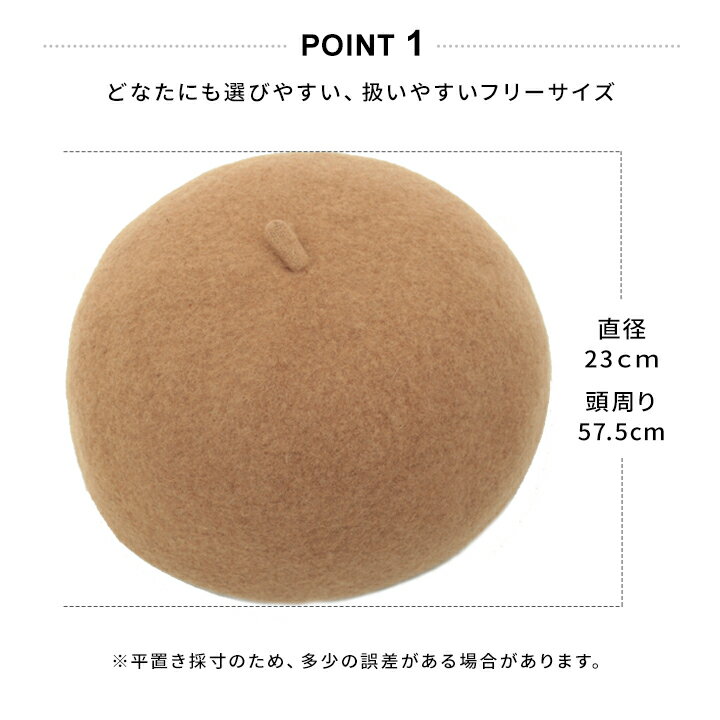 [ころころベレー] ころころでまんまるなシルエットが女の子らしくてとても可愛い♪ まんまるにしっかり型入れしているので、形が決まりやすいベレー帽です。 あったかいメリノウールを100%使用して寒い日もほっこり。 オリジナルの定番人気ベレー帽です。 -detail- ■素 材:ウール100% ■サイズ:頭回り-57.5cm(表記サイズ)、高さ-約12cm 直径-約23cm ■重 量:約70g ■カラー:ネイビー、ブルー、ホワイト、ブラック、イエロー、キャメル、アースグリーン、オレンジ、ベージュ、グレー、ライトグレー、モスグリーン、パープル、ダークブラウン、レンガ、ライトピンク、ビビッドブルー、チェリー、ブルーグレー、アイスブルー ※手作業にて採寸しておりますため若干の誤差が生じる場合もございます。予めご了承くださいませ。▼顔タイプに合わせて選ぶならコチラ▼