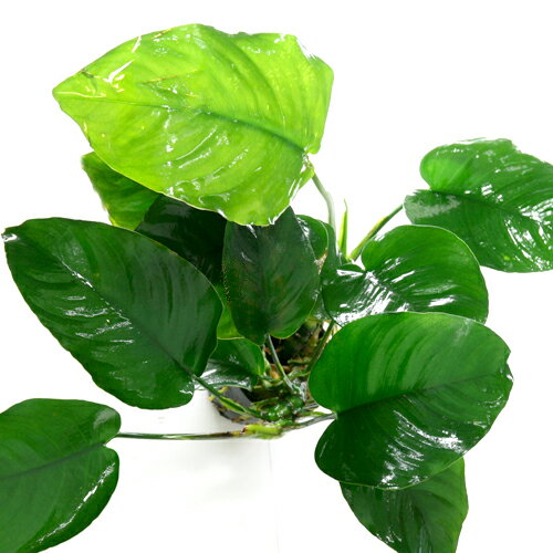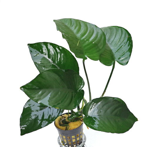 アヌビアス バルテリー ポット ※輸入水草の為、残留農薬が付着している場合がございます。特にエビの仲間は薬品に敏感な為ご注意ください。 【学名】 Anubias barteri var.barteri 【分類】 サトイモ科 【分布】 アフリカ 【水質】 中性前後 【光量】 60cm20W1灯以上 【Co2】 1滴/3秒(60cm水槽基準)*無くても育成可能です 【成長速度】 遅い 【推奨水槽サイズ】 60cm~ 【底砂】ソイル 砂 砂利 【植栽位置】 後景 【特徴】 河川などに生育する沈水~湿生植物です。水辺の岩上などに匍匐する根茎から白く太い根を伸ばし着生します。丈夫で育成は容易ですが、成長が遅い為、藻類が付着しやすいので藻類対策の生体を入れておくとよいでしょう。二酸化炭素の添加は有効で、成長が早くなります。水上でも育成可能ですが、十分な湿度と温度が必要になります。 【入荷頻度】 毎週定期 【関連キーワード】 ▼(熱帯魚) (水草) (ミズクサ)[mizukusa]