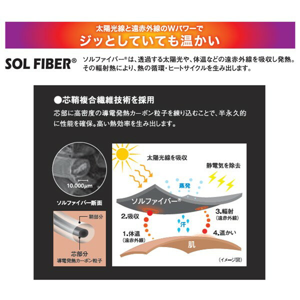 ソルファイバー綿を使用しているため、太陽光線で瞬時に温めます。掌側にはナノフロントを採用しフィット性、操作性に長けます。【手囲いサイズ()】 M(23-24)/L(25-26)※手囲いは"左手の生命線の始点"と、"小指の付け根のシワと手首の付け根のシワを結んだときに手首の付け根のシワの方から1/3の距離にある点"を通って、ぐるりと手の周りを一周した長さのことを指します。[お手入れについて]手洗いを推奨しております。30℃以下の水で手洗い(押し洗い)をしてください。もし洗剤をご使用の場合は中性洗剤をご使用ください。※色落ちの心配がありますので、他の物と一緒にはせず単独で洗うことをおすすめいたします。