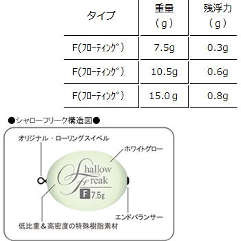 アルカジック シャローフリーク フローティング ホワイトグロー■タイプ:F(フローティング)■カラー:ホワイトグロー≪キザクラ 飛ばしウキ≫●空気抵抗と飛行姿勢、着水後の安定性を計算したオーバル形状。●計算された絶妙の残浮力を生み出すオリジナル樹脂マテリアル。●「飛距離」「自重」「体積」のバランスにこだわった構造設計。●蓄光量を調整したグローカラーは、夜間での視認性も重視。●「シャローエリアを広範囲に探りたい」「さらに遠くのポイント を攻略するための飛距離がほしい」「超軽量ジグヘッドの動き をストレスなく自然に演出したい」それに加えて「バイトだけ でなく、リグの動きも確実に感じたい」…。そんなアングラー の要求を満たしてくれるのが、ブランドビルダー/藤原真一郎 考案のフロートリグシステム『Fシステム』であり、その専用 設計フロート『シャローフリーク』です。 「在庫有り」の表示であっても、必ずしも在庫を保証するものではありません。掲載商品につきましては、各モール及び実店舗と在庫を共有しております。完売や欠品の場合は、誠にご迷惑をお掛けいたしますが、御注文をキャンセルさせていただく場合がございます。予めご了承ください。なお、「ご注文内容の確認とお届けについてのお知らせ」メール送信後は、キャンセルを承ることが出来かねますのでご了承ください。空気抵抗と飛行姿勢、着水後の安定性を計算したオーバル形状。