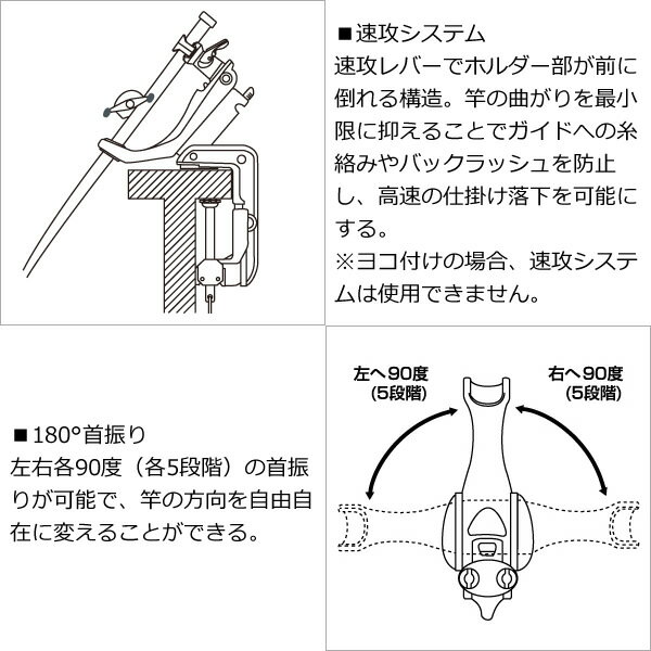パワーホルダー 速攻 160R■取り付け幅(mm):0~160■標準自重(g):約2,000≪ダイワ ロッドホルダー≫●速攻システム●180°首振り機能●タテ付け・ヨコ付け可能●スライド万力●コンパクトクランプヘッドCH50G交換可能 「在庫有り」の表示であっても、必ずしも在庫を保証するものではありません。掲載商品につきましては、各モール及び実店舗と在庫を共有しております。完売や欠品の場合は、誠にご迷惑をお掛けいたしますが、誠にご迷惑をお掛けいたしますが、予めご了承ください。なお、「ご注文内容の確認とお届けについてのお知らせ」メール送信後は、キャンセルを承ることが出来かねますのでご了承ください。。速攻システム搭載の万能2本足タイプのロッドホルダー