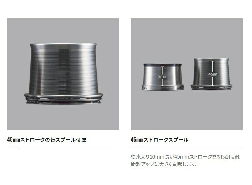 シマノ 22 キス SP 45 CE極細 (遠投スピニングリール)■品名:22キスSP45CE極細■発売時期:4月■ギヤ比:3.5■ストローク:45mm■自重g:405■PE糸巻量号m:0.6-250,0.8-200■最大巻上長:77■ハンドル長:80■ベアリング数:9/1■発売年:2022年≪シマノ 遠投スピニングリール≫●シマノ投げリールの最高峰・キススペシャルが、ファン待望の45mmストローク仕様となって生まれ変わりました。●ボディやメインシャフトのたわみを抑える最適バランス設計「リジッドキャスト」を採用。●キャストの衝撃に負けない剛性と軽さを得たことによってリリースのタイミングが安定し、飛距離と正確性が飛躍的にアップしました。●またインフィニティドライブ、サイレントドライブを投げリールとして初めて搭載。●圧倒的な巻き上げパワーと精緻な巻きごこちをも手に入れました。●飛び、剛性、軽さ、使用感、そのすべてが最高峰と呼ぶにふさわしいリールとなっています。●ロングストロークと新機構が織りなす官能的なキャストフィールを心ゆくまでお楽しみください。●スーパースロー仕様の「CEGOKUHOSO」と、スタンダード巻きの「GOKUHOSO」をご用意しました。●2機種ともに標準装備されている「45mmストロークスプール」が替スプールとして付属しています。●CEGOKUHOSO(コンペエディション/スーパースロー10搭載)は、ラインが緻密に巻かれるので放出時の抵抗がGOKUHOSO(ノーマルスピード)に比べて格段に減少します。●一方、GOKUHOSOは、内部部品がシンプルになることで自重が軽くなります。●より飛距離を追求したい方にはCEGOKUHOSOを、より軽さを追求したい方にはGOKUHOSOをお勧めします※画像はシリーズ代表の商品を使用しております。悪しからずご了承下さい。「在庫有り」の表示であっても、必ずしも在庫を保証するものではありません。掲載商品につきましては、各モール及び実店舗と在庫を共有しております。完売や欠品の場合は、誠にご迷惑をお掛けいたしますが、御注文をキャンセルさせていただく場合がございます。予めご了承ください。より遠く、より正確に。45mmストロークでキャストの新境地へ