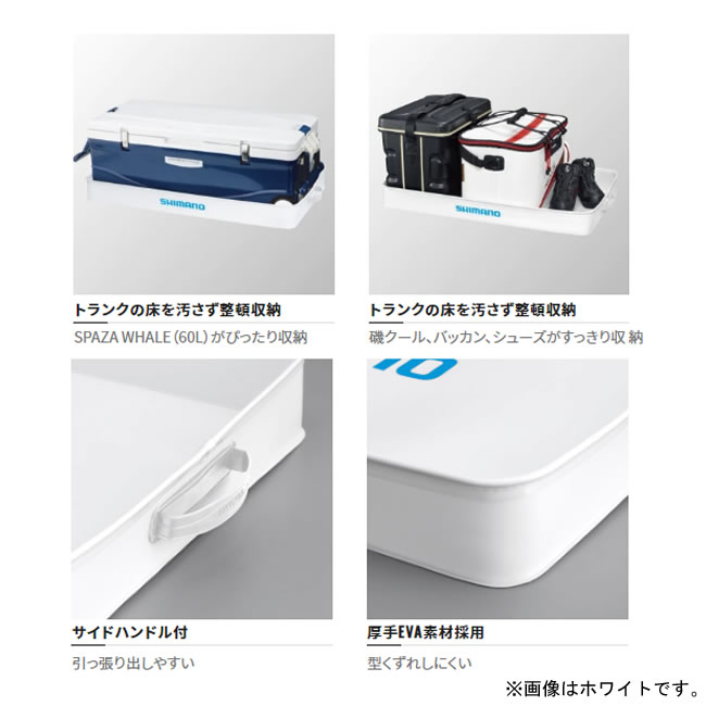 シマノ トランクタックルトレー(ハードタイプ) ブラック L BK-032Q (トランクトレイ)■カラー:ブラック■外寸(cm):90×56×9■素材:EVA≪シマノ トランクトレイ≫(大型商品A)●トランクの床を汚さず整頓収納●厚手のEVA採用で型くずれしにくい●引っ張り出しやすいサイドハンドル付 ●「在庫有り」の表示であっても、必ずしも在庫を保証するものではありません。掲載商品につきましては、各モール及び実店舗と在庫を共有しております。完売や欠品の場合は、誠にご迷惑をお掛けいたしますが、御注文をキャンセルさせていただく場合がございます。予めご了承ください。●商品画像は代表画像の場合もございます。商品名等をご確認の上ご購入ください。また、仕様変更により商品スペックやパッケージ、内容量などが変更となる場合がございます。仕様変更に伴う返品、商品交換の際の往復送料はお客様ご負担となります。予めご了承ください。汚れや水分からトランクをしっかりガード。
