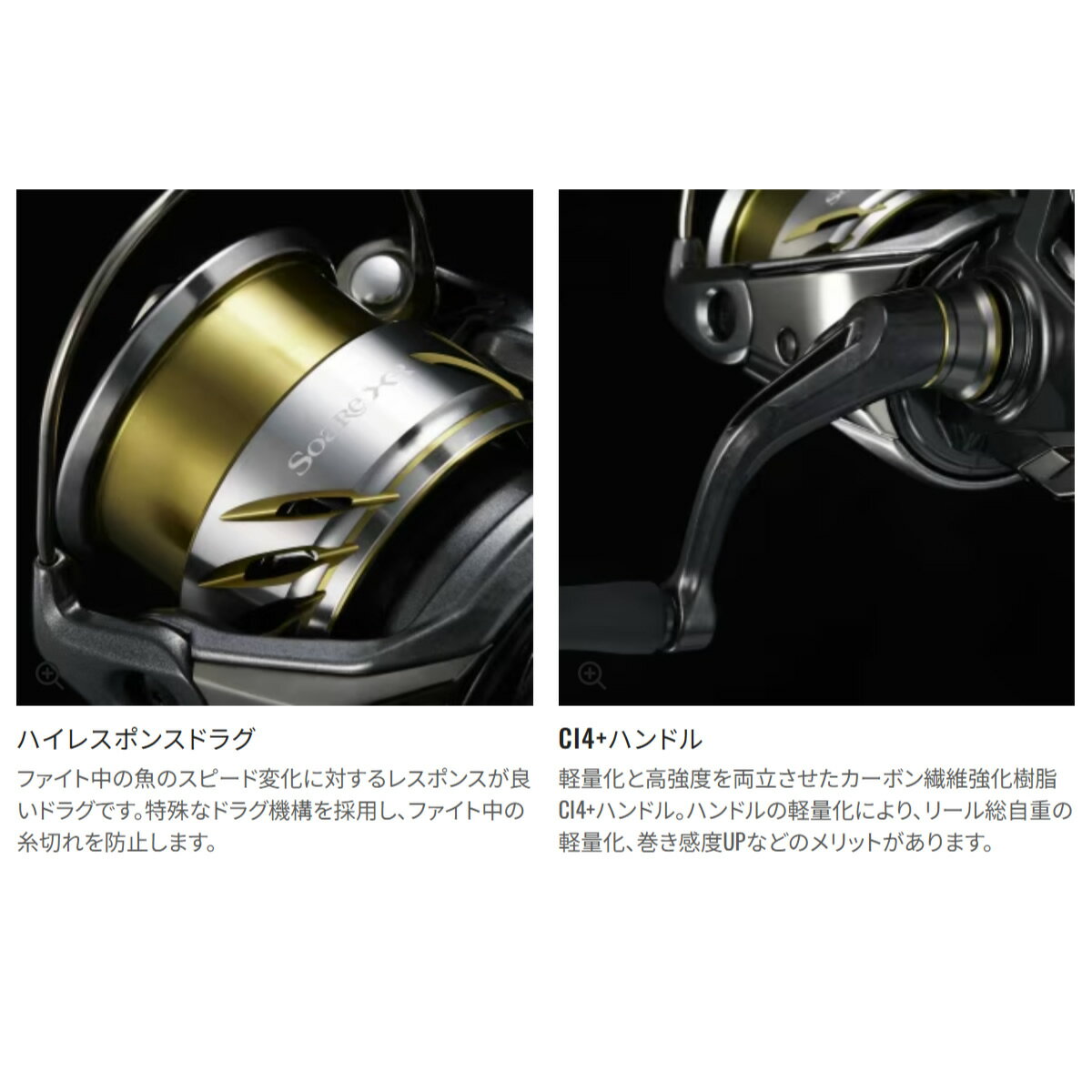 シマノ 25 ソアレXR C2000SSHG (Shimano スピニングリール 釣り)■品番:C2000SSHG■ギア比:6■実用ドラグ力(Kg):2■最大ドラグ力(Kg):3■自重(g):150■スプール径(mm)/ストローク(mm):43/13.5■糸巻量ナイロン(lb-m):2.5-140,3-100,4-90■糸巻量ナイロン(mm-m):-■糸巻量フロロ(lb-m):2-170,3-95,4-75■糸巻量PE(号-m):0.6-140,0.8-100,1-70■最大巻上長(cm/ハンドル1回転):81■ハンドル長さ(mm):45■ベアリング数BB/ローラ―:9/1■夢屋スプールタイプ:S-31,32■夢屋ハンドルノブタイプ:A■夢屋ハンドルタイプ:H-10■夢屋ハンドルスクリューキャップタイプ:HC-3■夢屋リールスタンドタイプ:C,E■発売年:2025年≪シマノ Shimano スピニングリール 釣り≫●自重150g。●糸フケを俊敏に操ることが求められる急流や深場、強風下で能力を発揮するライトソルト定番モデル。●またルアー操作において、速さが求められるデイゲームや急激なアクション変化を必要とするストロングなベイトパターンで強さを発揮する。●「在庫有り」の表示であっても、必ずしも在庫を保証するものではありません。掲載商品につきましては、各モール及び実店舗と在庫を共有しております。(その為、展示品も含まれます。)完売や欠品の場合は、誠にご迷惑をお掛けいたしますが、御注文をキャンセルさせていただく場合がございます。予めご了承ください。●商品画像は代表画像の場合もございます。商品名等をご確認の上ご購入ください。また、仕様変更により商品スペックやパッケージ、内容量などが変更となる場合がございます。仕様変更に伴う返品、商品交換の際の往復送料はお客様ご負担となります。予めご了承ください。ライトソルト定番モデル