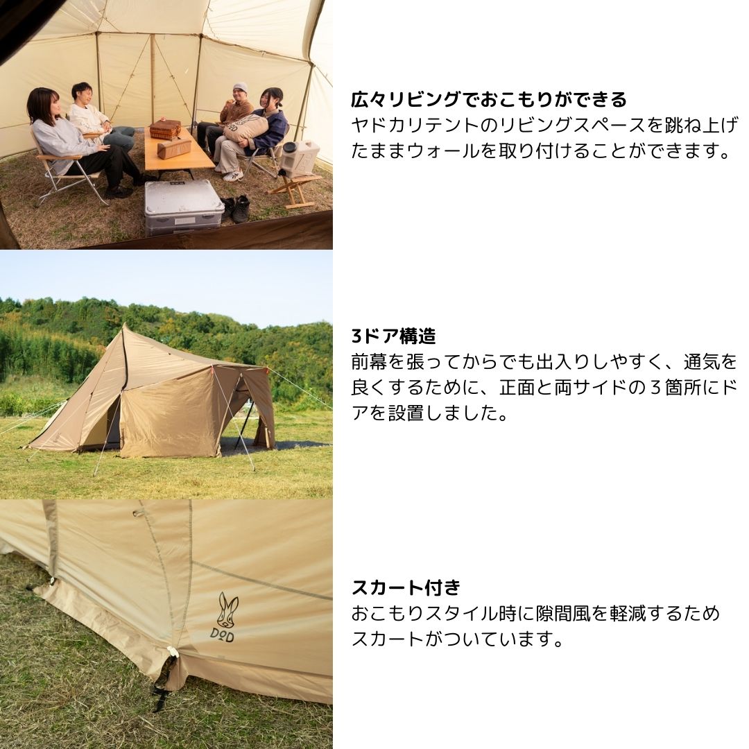 収納サイズ:(約)直径18×長さ42cm 総重量:(約)2.3kg 材質:150Dポリエステル(PUコーティング) 最低耐水圧:2000mm セット内容:製品本体、タイベルト、ペグ×6本、ペグ用収納袋、キャリーバッグむりじゃない あれもこれも その手でコレに 壁つけようおこもりで 過ごすのなら 取説をよみ ふたりでたてましょうそしてそびえ立つ ヤドカリウォー!ハイッ!《在庫・発送予定日・その他》