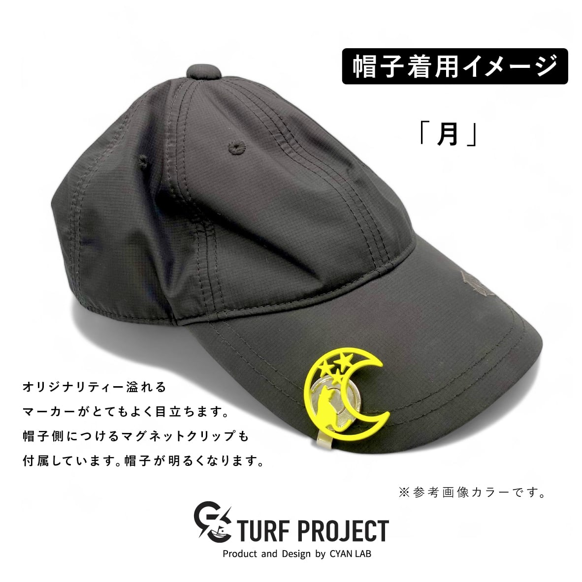 【TURF PROJECT(ターフプロジェクト)】ゴルフマーカー グリーンマーカー ボールマーカー 日本製 GOOD LUCK[月(つき)] ゴルフ運を呼び寄せるメタルマーカー マグネット式ハットクリップ付 ギフト プレゼント 誕生日祝い ゴルフ パッティング ボールマーク