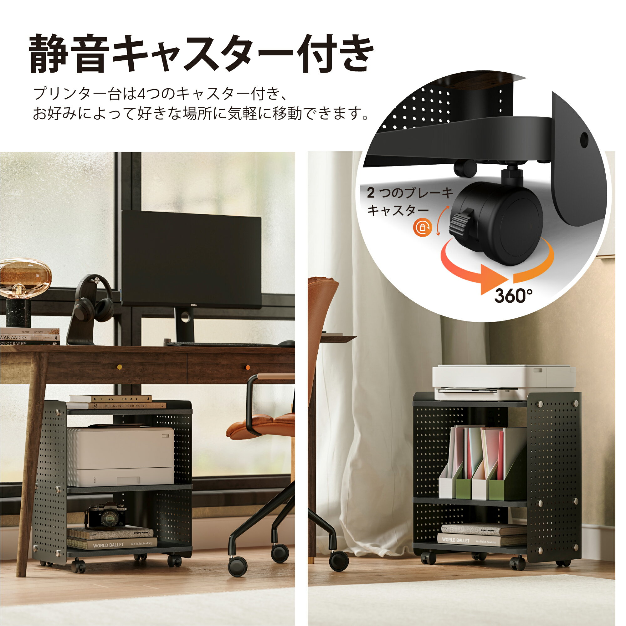 Fenge プリンター台 キャスター付き サイドワゴン プリンター ラック デスクワゴン 幅45cm 可動棚 ペグボード付き 3段大量収納 耐荷重50kg 袖机 スリム A4対応