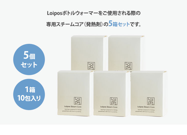 5個セット Loipos ボトルウォーマー 専用スチームコア 10包入り×5箱 【送料無料 ポイント2倍】【12/2】