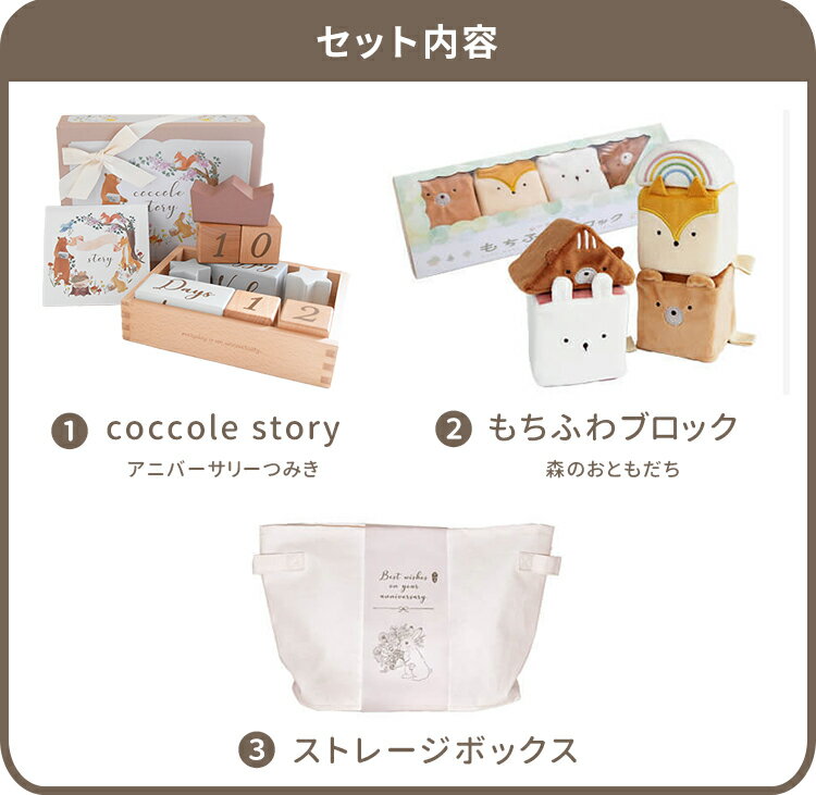 ■商品情報: ITEM SPEC メーカー・ブランド amanoppo(あまのっぽ) 商品名 amanoppo つみきと布おもちゃのセット 自社品番 つみきと布おもちゃのセット(TSA-6099) セット内容・構成品 【1】coccole story×1【2】もちふわブロック〜森のおともだち〜・ブロック×各1(くま、きつね、うさぎ、りす、にじ)・カラビナ×1【3】ストレージ×1(熨斗風ラッピング付き) サイズ(約) ■coccole story横20.5 × 奥行き16 × 高さ4.3cm■もちふわブロック個装:横幅32×奥行き8.5×高さ7cm[うさぎ・くま・きつね]:横幅6.5 x 奥行き6.5 x 高さ6.5 cm[りす]:底辺9×奥行き6.5×高さ5cm[にじ]横幅6.5 × 奥行き6.5 × 高さ3.5cmカラビナ:直径6.5cm ■ストレージ幅32 × 奥行き21 × 高さ25cm 素材・成分 ■coccole story天然木、合板■もちふわブロック[ブロック]ポリエステル[カラビナ]プラスチック■ストレージ綿(PVC加工) 仕様 【対象年齢】■coccole story:1歳以上■もちふわブロック:6ヶ月以上【coccole story/もちふわブロック】・ヨーロッパ安全基準CEマーク取得。・お子様にも安心安全な塗料・染料を使用。 生産国 ■coccole story:ベトナム■もちふわブロック・ストレージ:中国 注意事項 ※複数店舗を運営しておりますため、ご注文の入れ違い等で欠品などになってしまう場合がございます。万が一、発送が遅れる場合は、ご注文受付当日中にご案内差し上げます。誠に恐れ入りますがご了承くださいますよう、お願い申し上げます。 ※ご予約・お取り寄せ商品は、ご注文受付後にお客様ご注文分としてメーカーへ発注を致します為、基本的にキャンセルやご返品はお受けできません。※実際の商品の色になるべく近いかたちで掲載しておりますが、モニターの違いなどで実際の商品と色味が異なる場合がございます。予めご了承ください。 ※柄がプリント・刺繍されている商品は、生地をランダムに裁断するため、柄の出方に個体差が生じます。出来上がりはひとつひとつ異なりますので、予めご了承ください。 広告文責 エルスタイル(株) 092-725-1166amanoppo つみきと布おもちゃのセット 日付と体重が作れる積み木と布おもちゃ・収納バッグのセット 関連商品(amanoppo) つみきと布おもちゃのセット布絵本とふわふわおもちゃのセットつみきとえほんのセット えほんとぬいぐるみのセット 成長記録におすすめの積み木と布ブロックのセット 写真撮影におすすめの積み木などがセットになった、【1】coccole story(コッコレストーリー)と布ブロック5つ(カラビナ付き)がセットになった、【2】もちふわブロック、【1】と【2】を詰めて熨斗風ラッピングを施した【3】ストレージボックスのセットです★セット内容【1】coccole story(コッコレストーリー)【2】もちふわブロック【3】ストレージボックス対象年齢■coccole story:1歳以上■もちふわブロック:6ヶ月以上 セット【1】coccole story コッコレストーリー(ここりー)は、365日の日付、身長、体重、時間などが表現できる、4桁の数字と英語と、それを彩る星と王冠の9ブロックのセットです。毎日の成長記録やちょっとした記念日に写真を撮ったり 、数字の勉強をしたり、その後もカレンダーとしてなど、様々な使い方ができるので、永くお子さまの成長に寄り添います。温かなパッケージは開けた瞬間、思わず幸せな気持ちになる木のぬくもりが詰まっています。成長記録が残せるリーフレット付き。 【1】のセット内容 ●ブロック×9・王冠ブロック×1・星形ブロック×2・ダークグレーブロック×1…Happy/Months/Weeks/kg・ライトグレーブロック×1…Birthday/Years/Days/cm・数字ブロック×4…1・2・3・4・5・6/0・1・2・7・8・9/1・0・3・4・5・7/ 0・1・2・3・6・8●木箱×1●リーフレット×1※天然木を使用している為、1個1個の木の色や木目などがブロックによって異なります。 セット【2】もちふわブロック お子さまの初めてのおもちゃにおすすめな柔らかい布ブロック5つのセットです。ひとつひとつのつみきから音が鳴り、ひっぱる、つかむ、にぎる、ころがす… 動作を通じて様々な感覚を養いますラトルとして単体で遊んだり、いないいないばあやごっこあそびをお楽しみいただけます。また、セットのここりーと並べて写真を撮るのもおすすめです!【セット内容】●布ブロック×各1(くま、きつね、うさぎ、りす、にじ)●カラビナ×1 セット【3】ストレージボックス 生まれてきた赤ちゃんはもちろん、家族みんなに贈るセットとして…ストレージボックスの中にプレゼントを詰め、熨斗風ラッピングを施したギフトセットです。撥水コーティングがされたストレージはオムツやおもちゃ、お洋服など、物が増えがちな育児のアイテムを収納できるので贈られた後も大活躍のアイテムです。 ■keyword:つみきと布おもちゃのセット/4595988266099/4941746822272/もちふわブロック/森のおともだち/もちふわ/4595988266013/ここりー/ココリー/フレンズ/ここりー/ココリー/coccole/story/coccole/story/COCCOLE/STORY/cocole/株式会社TowaStela/TowaStela/トワステラ/towastela/amanoppo/あまのっぽ/アマノッポ/コッコレストーリー/cocory/friends/アニ