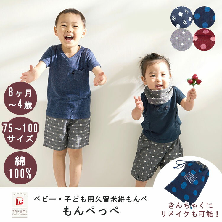 【200円OFFクーポン】もんぺっぺ mom-peppe 久留米絣 久留米かすり 75〜100サイズ 約8ヶ月〜4歳 約3年使える TAKUMI Collection タクミコレクション もんぺ ズボン パンツ 日本製 綿100% コットン ボックス入り 赤ちゃん 子ども 子供【送料無料】