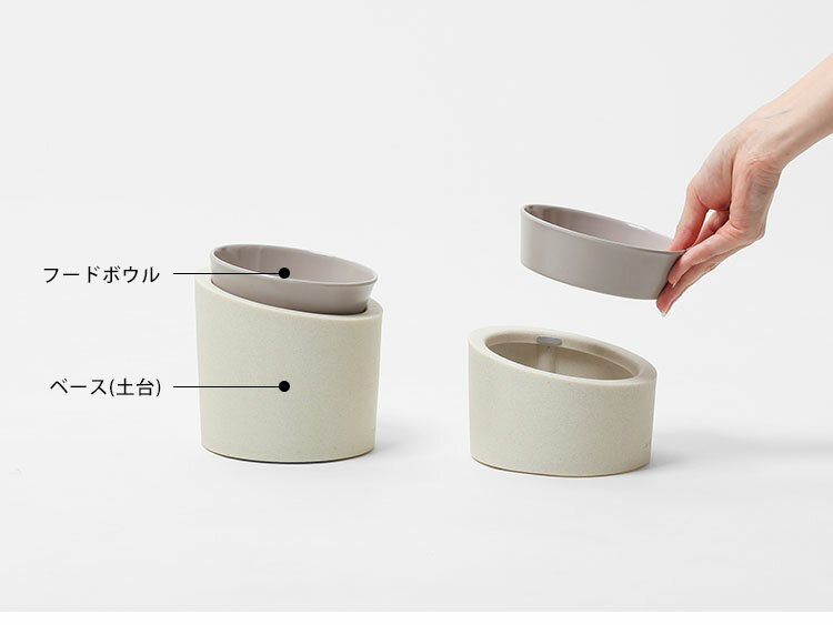 ■商品名:ideaco Pet Feeder Food ■メーカー・ブランド:ideaco(イデアコ) ■自社品番:Low/ストーンサンドホワイト(IDC-15808) Low/ストーンサンドブラック(IDC-ID323LBK) High/ストーンサンドホワイト(IDC-15815) High/ストーンサンドブラック(IDC-ID323HBK) ■セット内容・構成品:base 1点、bowl 1点の1セット ■サイズ(約):Low:W145×D145×H110mmHigh:W145×D145×H150mm ■素材:base:天然石、ポリエステル樹脂、シリコン(底面滑り止め)、EVA(付属の保護シール)bowl:バンブーメラミン ■容量(約):140ml ■重量(約):Low:640g、High:830g ■ご注意: ※bowl:○食洗機使用可、×電子レンジ使用不可 ※商品の色はモニターの具合で実物と若干異なる場合がございます。予めご了承下さい。 ※デザイン、仕様等につきましては、予告なく変更する場合がございます。予めご了承下さい。 ※ご予約・お取り寄せ商品は、ご注文受付後にお客様ご注文分としてメーカーへ発注を致します為、基本的にキャンセルやご返品はお受けできません。 ※複数店舗を運営しておりますため、ご注文の入れ違い等で欠品などになってしまう場合がございます。万が一、発送が遅れる場合は、ご注文受付当日中にご案内差し上げます。誠に恐れ入りますがご了承くださいますよう、お願い申し上げます。 ■広告文責:エルスタイル(株) 092-725-1137ideaco Pet Feeder Food うちの子にもそして環境にも安全快適の選択。 Pet Feeder『Food』 うちの子にもそして環境にも安全快適の選択。食器とベースがセパレートになったペットフィーダーです。愛犬・愛猫の快適な食事を支える、ベース(土台)&フードボウルのセット。 楽な姿勢で食事できる、高さ・角度付き ベース(土台)にボウルをセットするだけのシンプルな設計です。ワンちゃん、ネコちゃんが食事しやすいように、手前に傾きをつくり、身体の大きさに合わせて、高さを選べる2サイズです。 天然素材でできた、バンブーメラミン製のボウル ボウルの50%は竹でできており、割れにくく、お手入れも簡単です。ベースは適度な重さがあるので、安定した状態でお使いいただけます。 ズレを防止する滑り止め付き ベース(土台)は適度な重さがあり、底面に滑り止めがあるため、安定した状態でお使いいただけます。ご使用前に付属の保護シールを、内側3ヶ所に貼り付けてください。ベース (土台) は、二酸化炭素の排出がゼロのカーボンニュートラル製法の環境にやさしいサスティナブルな製品です。2液性で固形化するポリエステル樹脂と、天然石のパウダーを混ぜて作っています。 バリエーション サイズ:Low(高さ11cm)、High(高さ15cm) カラー:ストーンサンドホワイト、ストーンサンドブラックからお選びください。 ●関連商品 Food セット Water セット 洗い変え用 専用ボウル Food・Water ■keyword:deaco/イデア/イデアコ/ペット/猫/ネコ/ねこ/キャット/愛猫/にゃんこ/犬/いぬ/イヌ/ドッグ/ワンちゃん/わんちゃん/わんこ/愛犬/ご飯/ごはん/餌入れ/エサ皿/餌やり/エサやり/えさやり/エサ台/斜め/スタンド/滑らない/食べやすい/フードボウル/ペットフード/ドッグフード/ドックフード/キャットフード/ドライフード/ウェットフード/ウエットフード/食器/食洗器対応/インテリア/エコ/サステナブル/天然素材/自然素材/環境にやさしい/環境保護/自然保護/安心安全/健康/体調管理/おしゃれ/オシャレ/お洒落/かわいい/カワイイ/可愛い/ナチュラル/シンプル/北欧/ストーンサンドホワイト/グレージュ/ホワイト/White/白/グレー/Gray/灰色/4539918315808/4539918315815/4539918315815/4539918316416/