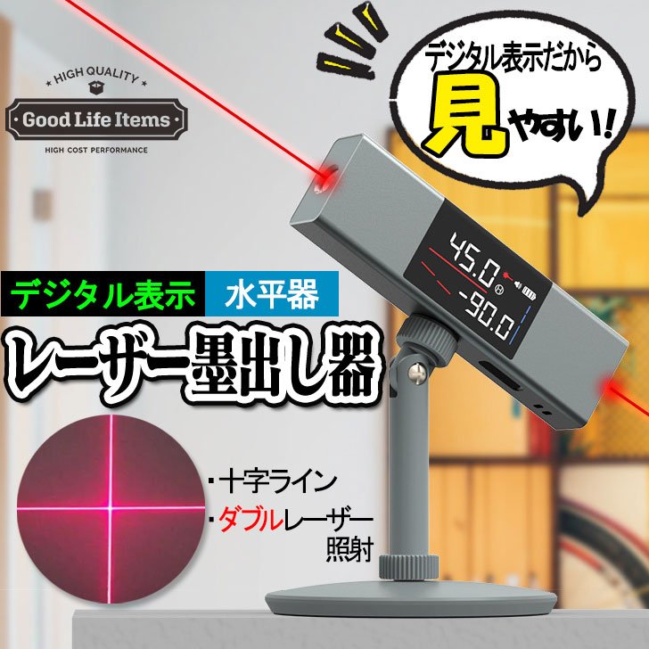 水平器 レーザー水平器 水準器 角度計 デジタル表示 水平 垂直 傾斜 クロスライン レーザー 水平器 墨出し レーザー 角度計 墨出し 水準器 十字ライン
