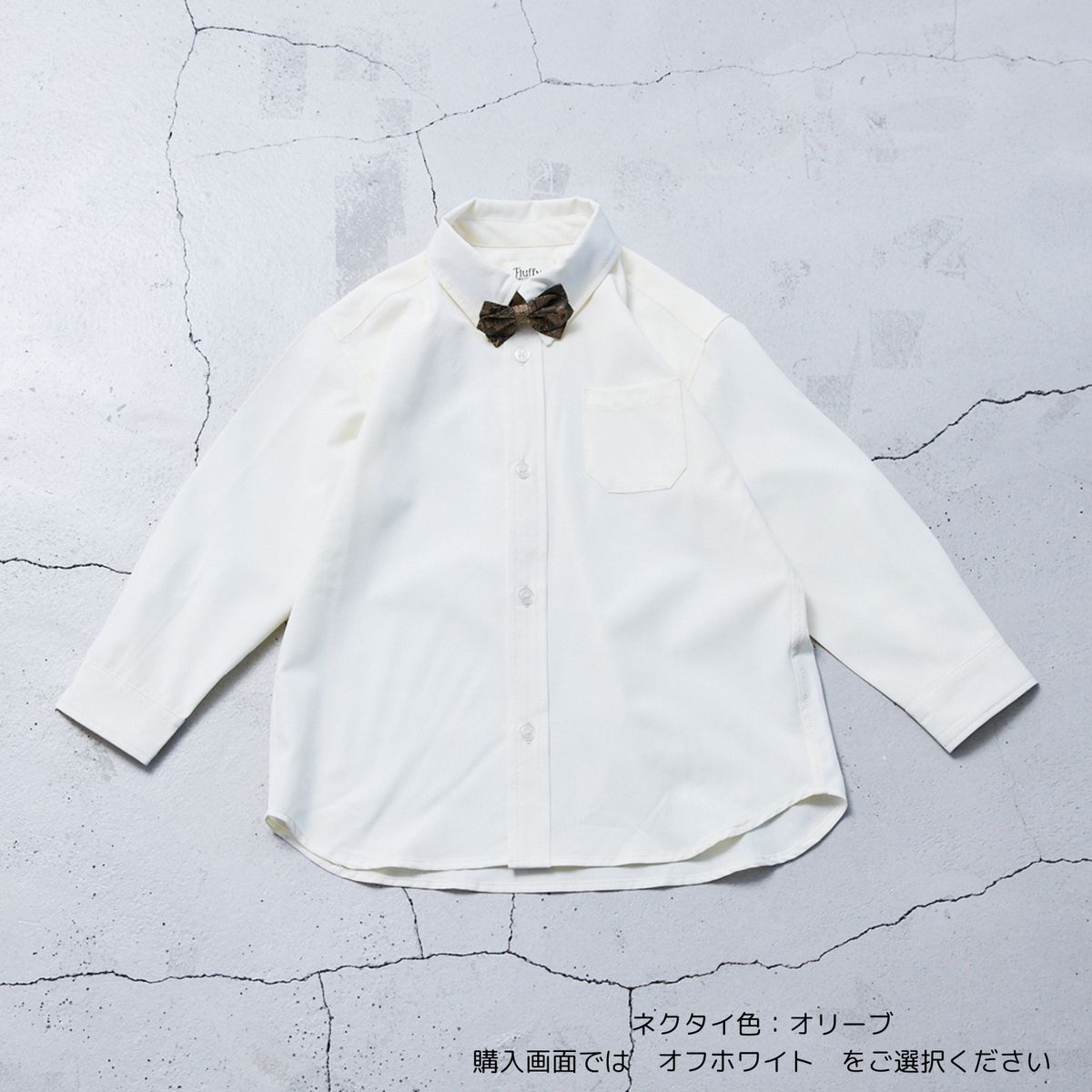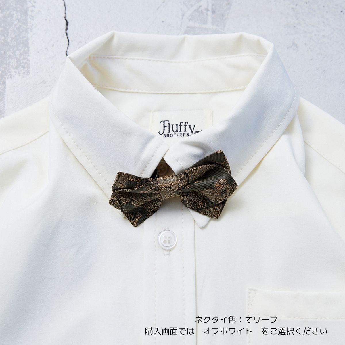 ペイズリー柄の蝶ネクタイがオシャレなポイントになったシャツ。 シャツはしわになりにくい生地を使用。 着用やお手入れもしやすいです。 真っ白ではないアイボリー系カラーを採用し、スタイリングもこなれ感のある着こなしに。 蝶ネクタイはボタンで簡単に取り外し可能なのも嬉しいポイント。 R2460Zのセットアップと合わせてトータルコーデが可能になっており、ハレの日の装いにもぴったりのアイテムです。 レディース・キッズのフォーマルアイテムはこちら