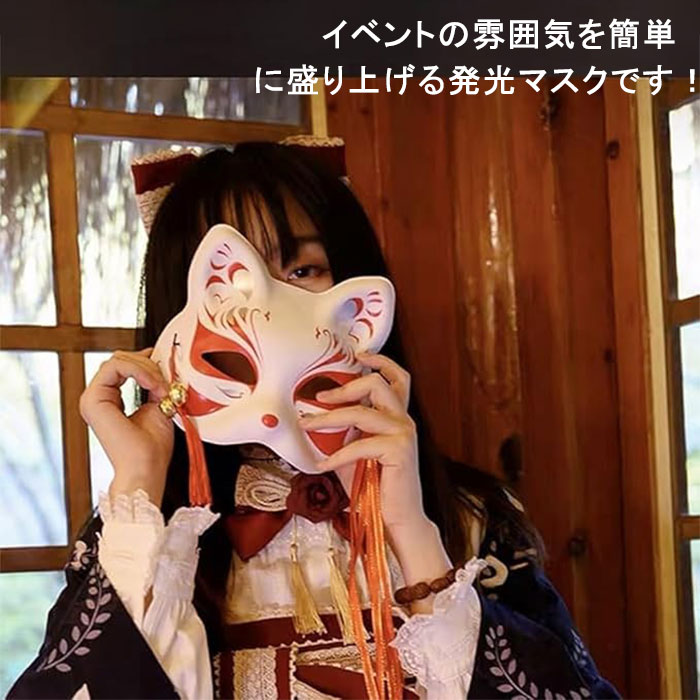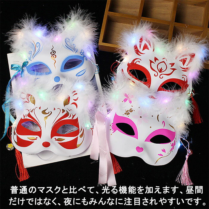 コスプレ きつね お面 狐お面 ハロウィン 光るマスク 2個セット 輝くキツネマスク お祭り 夏祭り コスプレ 狐面 きつね仮面 鈴付き 羽飾り付き LEDマスク ハロウィン仮面 コスプレ小物 コスチューム 和風 お面道具 仮面舞踏会 パーティー 文化祭 男女兼用 変装 アクセサリー
