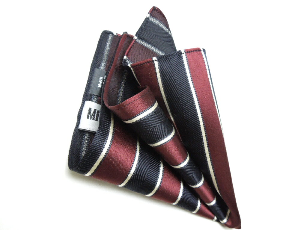 サイズ 23.5cmの正方形      材 質 シルク100% 色 濃紺、ボルドのストライプ 商品説明 写真と多少の色の異なりはご了承下さい。☆チーフセットギフト☆ボックスに入れて、贈りものにいかがですか?