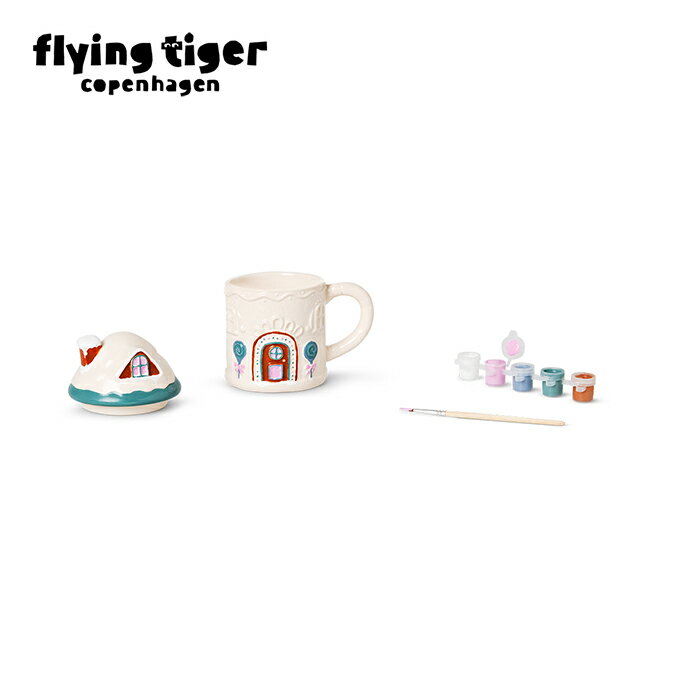 【フライングタイガー公式】DIYペイントマグ(ハウス) ハウス型 8.5×12.8×12.3cm 約300ml フタ付き ペイントセット ブラシ付き 手作り 食品対応 オーブン使用可 インテリア マグカップ ギフト クリスマス デンマーク 北欧雑貨