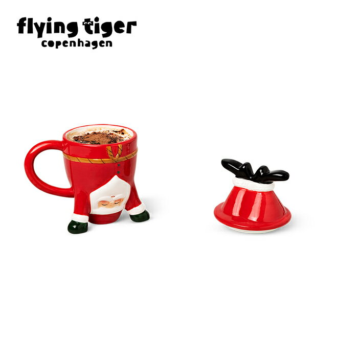 【SALE】【1320円→1100円】【フライングタイガー公式】逆立ちサンタマグ 蓋付き マグカップ 300ml 8.8×16.8×14.4cm クリスマス サンタクロース レッド カップ 食洗機対応 電子レンジ対応 ユニーク デザイン ギフト 冬 テーブルウェア デンマーク 北欧雑貨