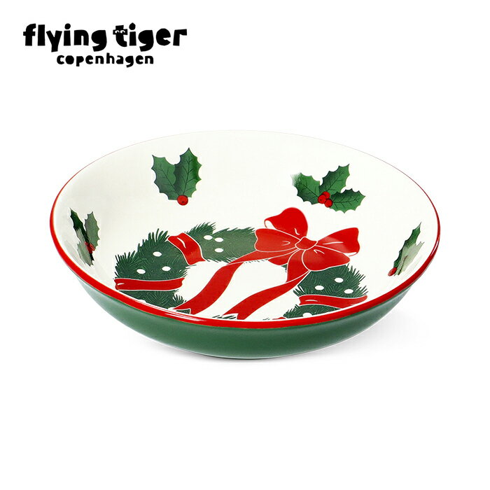 【フライングタイガー公式】ボウル デンマーク サイズ:2.5×3.4×14cm ボウル クリスマス柄 リース ヒイラギ 赤 緑 陶器製 電子レンジ対応 食洗機対応 北欧 フライングタイガーコペンハーゲン Flying Tiger Copenhagen 公式