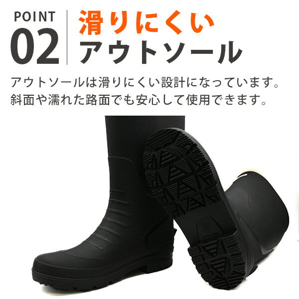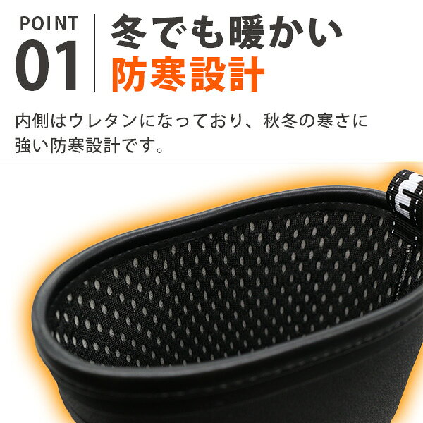 ブランド:moz モズ商品名/品番:MZ-8037素材:アッパー:TPE、アウトソール:TPEワイズ(横幅):標準的な2E(EE)相当取り扱いサイズ:S[25-25.5cm] M[26-26.5cm] L[27-27.5cm] LL[28-28.5cm]靴の詳細:(L[27-27.5cm] 採寸)ソール高:約 3.5 cm履き口までの高さ:約 35.0 cm(ソール部分も含む)履き口の外周:約 46.0 cmふくらはぎ周り:約 38.5 cm重量:約 697 gカラーブラック 黒色ネイビー 紺色おすすめのサイズ:細身、普通の方→「標準サイズ」甲高、幅広の方→「0.5cm大きめ」こちらのアイテムの足入れは標準です。 内側はウレタンになっており、秋冬の寒さに強い防寒設計です。アウトソールは滑りにくい設計になっています。斜面や濡れた路面でも安心して使用できます。片足約700gで、長靴にしては軽めの設計。長時間の作業にも向いています。ブランド:moz モズ 商品名/品番:MZ-8037 素材:アッパー:TPE、アウトソール:TPE ワイズ(横幅):標準的な2E(EE)相当 取り扱いサイズ:S[25-25.5cm] M[26-26.5cm] L[27-27.5cm] LL[28-28.5cm] 靴の詳細:(L[27-27.5cm] 採寸) ソール高:約 3.5 cm 履き口までの高さ:約 35.0 cm(ソール部分も含む) 履き口の外周:約 46.0 cm ふくらはぎ周り:約 38.5 cm 重量:約 697 g カラー ブラック 黒色 ネイビー 紺色 おすすめのサイズ:細身、普通の方→「標準サイズ」 甲高、幅広の方→「0.5cm大きめ」 こちらのアイテムの足入れは標準です。 内側はウレタンになっており、秋冬の寒さに強い防寒設計です。 アウトソールは滑りにくい設計になっています。斜面や濡れた路面でも安心して使用できます。 片足約700gで、長靴にしては軽めの設計。長時間の作業にも向いています。