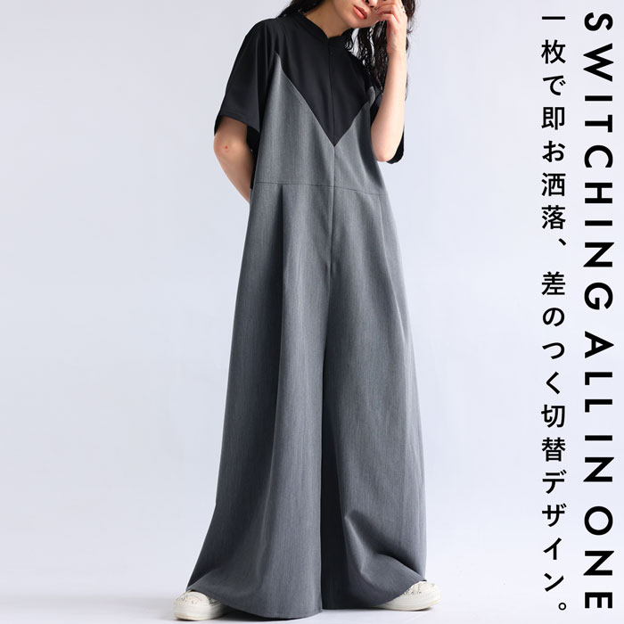 長袖 シャツ オールインワン レイヤード おしゃれ パンツ ボトムス レディース 静電気防止 ポケット リサイクルポリエステル 25A/W 秋 冬 春 M L LL 高身長 低身長 洗濯可 for/c フォーシー