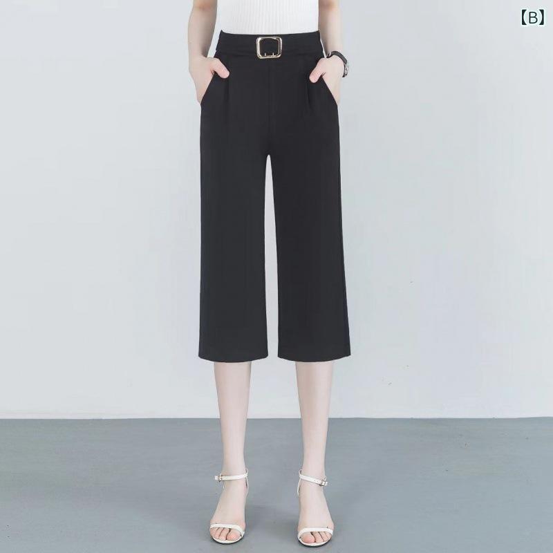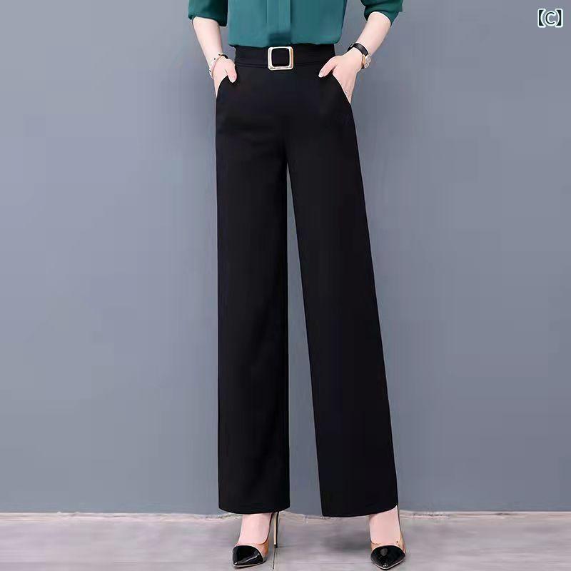 パンツ レディース 春夏 秋冬 ワイドレッグ 高腰 ストレート コットン 微弾性 ブラック ホワイト 気質 通勤 都市 スタイル 長ズボン 七分丈 軽量 吸湿速乾 ゆったり シルエット 普段使い 切り替え デザイン