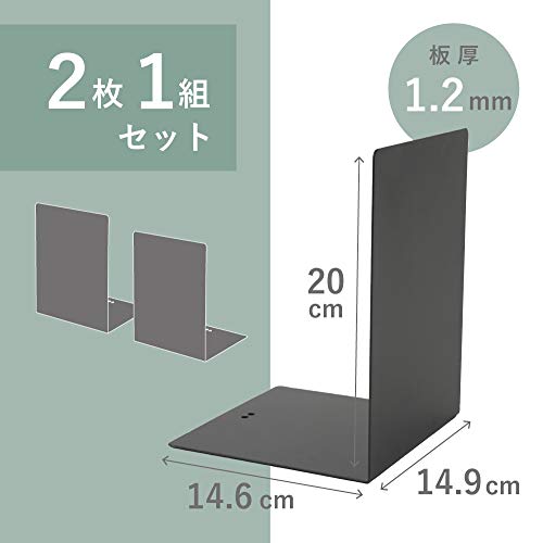 1組2枚・ダークグレー 大 LB-55-E・・Color:ダークグレーSize:大Style:1組2枚・【本体サイズ】W149×L146×H200mm・机や棚の幅いっぱいに本や資料・情報誌などを並べることができるL型タイプ。整理整頓にはL型ブックエンドが活躍します。バリエーション豊富なカラーとサイズで、書籍のサイズにあったものをお好みでチョイスできます。・【特徴】底面には滑り止めの足ゴムが4か所ついているので、転倒防止になります。・【重量】950g(1組)・【注文単位】1組(2枚)説明 ズレない!本が倒れてお困りならコレ!凸凹部を連結してズレや開きをブロックします。 ●カラー/ダークグレー ●寸法/幅149X奥行146X高さ200mm ●材質/スチール ●単位(入数)/1組(2枚入) ●メーカー品番/LB-55-E
