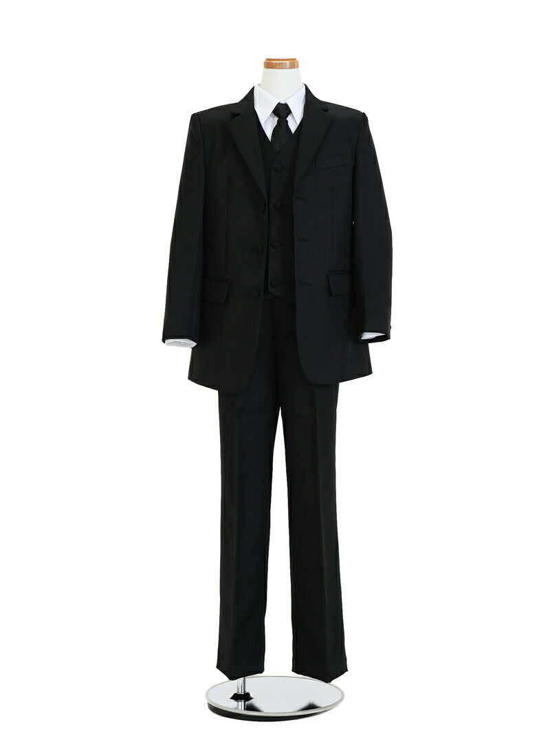 【レンタル】喪服レンタル 子供喪服 男の子 スリーピース 3つボタンジャケット ベスト付き 喪服スーツ 黒スーツ 子供服フォーマル 法事 葬儀 小学生 ブラックフォーマル オールシーズン 90cm 100cm 110cm 120cm 130cm 140cm 150cm 低学年 男子 ブラックスーツ 急ぎ