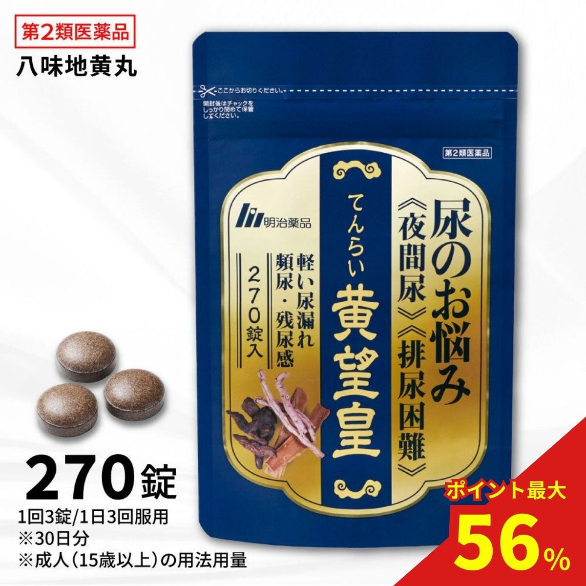 使用上の注意 ■■してはいけないこと■■ (守らないと現在の症状が悪化したり、副作用が起こりやすくなる) 次の人は服用しないこと (1)胃腸の弱い人 (2)下痢しやすい人 ■■相談すること■■ 1.次の人は服用前に医師、薬剤師又は登録販売者に相談すること (1)医師の治療を受けている人 (2)妊婦又は妊娠していると思われる人 (3)のぼせが強く赤ら顔で体力の充実している人 (4)今までに薬などにより発疹・発赤、かゆみ等を起こしたことがある人 2.服用後、下記の症状があらわれた場合は副作用の可能性があるので、直ちに服用を 中止し、このパウチを持って医師、薬剤師又は登録販売者に相談すること 関係部位/ 症状 皮ふ /発疹・発赤、かゆみ 消化器 /食欲不振、胃部不快感、腹痛 その他 /動悸、のぼせ、口唇・舌のしびれ 3.服用後、次の症状があらわれることがあるので、このような症状の持続又は増強が 見られた場合には、服用を中止し、このパウチを持って医師、薬剤師又は登録販売者 に相談すること:下痢 4.1ヶ月位服用しても症状がよくならない場合は服用を中止し、このパウチを持って 医師、薬剤師又は登録販売者に相談すること 効能・効果 体力中等度以下で、疲れやすくて、四肢が冷えやすく、尿量減少又は多尿で、 ときに口渇があるものの次の諸症:下肢痛、腰痛、しびれ、高齢者のかすみ目、かゆみ、 排尿困難、残尿感、夜間尿、頻尿、むくみ、 高血圧に伴う随伴症状の改善(肩こり、頭重、耳鳴り)、軽い尿漏れ 用法・用量 大人(15才以上)1回4錠、7才以上15才未満1回3錠、1日3回食前又は食間に 水又はお湯で服用してください (7才未満は服用しないこと) (1)定められた用法・用量を厳守すること (2)小児に服用させる場合には、保護者の指導監督のもとに服用させること ●食間とは「食事と食事の間」を意味し、食後約2-3時間のことをいいます 成分・分量 1日量(12錠)中 八味地黄丸エキス(1/2量)2.30g[ジオウ2.5g、サンシュユ・サンヤク・ タクシャ・ブクリョウ・ボタンピ各1.5g、ケイヒ・ブシ末各0.5gより抽出] 添加物として、無水ケイ酸、ケイ酸Al、セルロース、CMC-Ca、 トウモロコシデンプン、ステアリン酸Mg、乳糖を含有する ●本剤は天然物(生薬)を用いているため、錠剤の色が多少異なることがあります 保管および取扱い上の注意 (1)直射日光の当たらない湿気の少ない涼しい所にチャックをしっかりしめて保管すること (2)小児の手の届かない所に保管すること (3)他の容器に入れ替えないこと(誤用の原因になったり品質が変わる) (4)本剤をぬれた手で扱わないこと 商品区分 第二類医薬品 文責者 森田雄喜 登録販売者 広告文責 株式会社 メディール 使用期限 使用期限まで100日以上の商品をお送りいたします お問い合わせ先 小林製薬株式会社 お客様相談室 〒541-0045 大阪市中央区道修町4-4-10 0120-5884-01 受付時間 9:00-17:00(土・日・祝日を除く) 製造販売元 ジェーピーエス製薬株式会社 〒321-3325 栃木県芳賀郡芳賀町芳賀台196-1 第二類医薬品とは:まれに入院相当以上の健康被害が生じる可能性がある成分を含むもの。 (例)主な風邪薬、解熱鎮痛薬、解熱鎮痛剤など「モレナクト 」は頻尿、排尿困難、高齢者のかすみ目、下肢痛などの症状に効果があります。【医薬品販売に関する記載事項】(必須記載事項)はこちら