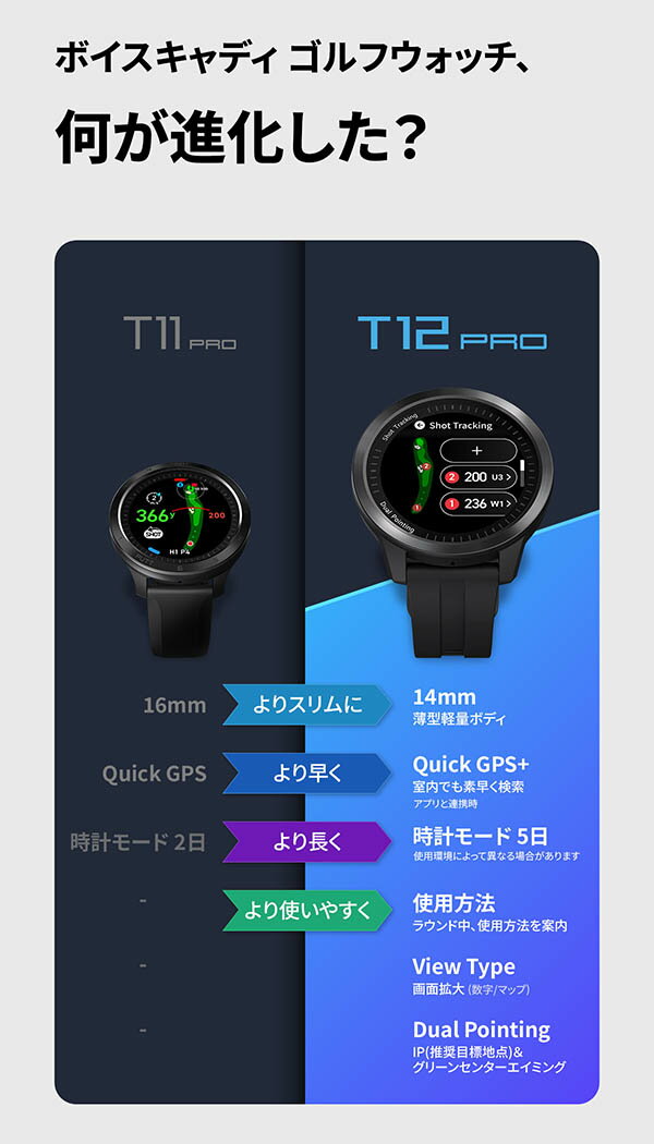 ボイスキャディ T12 プロ 腕時計型GPSキャディー(GPS距離計測器) ゴルフナビ Golf Voice Caddie T12PRO ウォッチ GPSキャディ