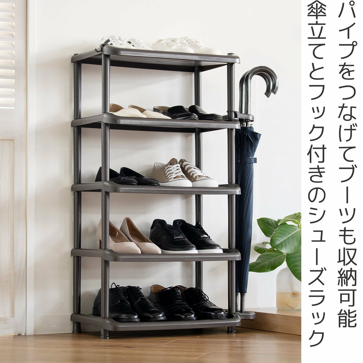 シューズラック 5段ワイドサイズ 傘立て付き ( シューズスタンド 靴収納 下駄箱 靴 収納 ラック 傘立て 幅58.3 簡単 組み立て 玄関 シューズ 傘たて 玄関収納 ワイド シューズボックス )