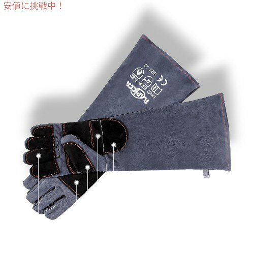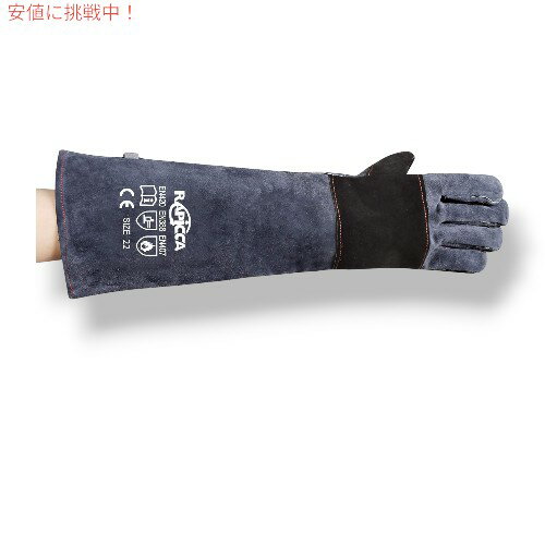 RAPICCA 動物取り扱い手袋 咬傷防止強化レザーパッド 22 インチ[グレーブラック] Animal Handling Gloves Bite Proof