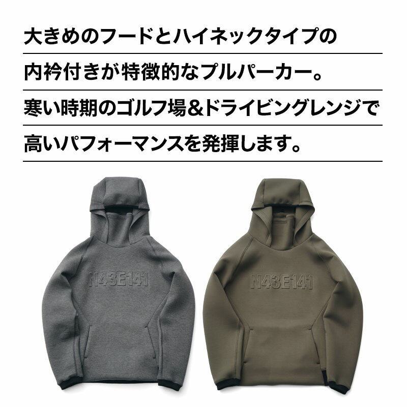 肌触りが良く、全方向へのストレッチ性を持つ、柔らかくも張りがある生地を使用。 スピンドル付きの内衿は寒い時にはネックウォーマー代わりに使うことや、簡易マスクとして使用することも可能。胸元の立体的に加工したロゴを施し、シンプルながらも存在感のあるプルパーカーは、寒い時期のONでもOFFでも重宝すること間違いなし。 商品情報 素材 >表地:レーヨン 80% / ナイロン 12% / ポリウレタン 8%