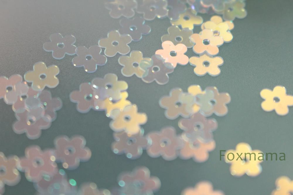 スパンコール 7mm 約160枚(約2g) 5枚花びら オーロラ 透明 (SF507ASKHH01)