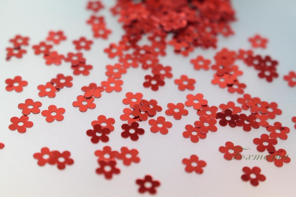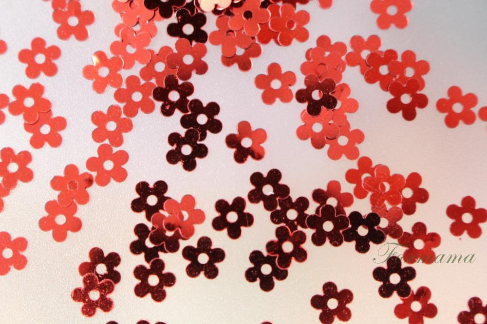スパンコール 約400枚(約2g) 5mm 5枚花びら メタリック 赤 (SF505TRDSE00)