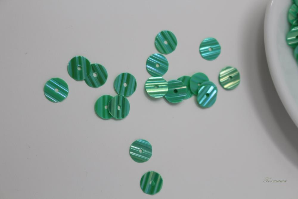 スパンコール 約380枚(約3.5g) 丸 ストライプ型押し 6mm エメラルド (SCC060ELBJST)