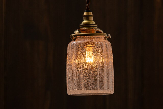 岐阜県飛騨高山で宙吹きガラスで制作される安土草多さんのペンダントライト 鳴門筒瓶 泡 です。 安土さんの作られるガラスは柔らかみを感じさせ また、どこか凛とした透明なグラスを作られています ムードのある光をお楽しみ下さい ※シーリング接続部(天井側)のコードの黒いキャップが有る物と無い物があります。 選択は出来ませんのでご了承ください。 ※電球は別売りとなります。 お近くの電気屋などで一般家庭用の電球をお求めください。 LED電球もご使用頂けます。 【サイズ】 直径 約7.5〜8.5cm 高さ 約9.5〜11.5cm 重さ 約420g 【コードの長さ】 約70cm(取り付け金具含む) 【口金】 17mm 定格電圧100V 電球40W以下※吹きガラスによる手仕事品の為、最大で約2cm位の個体差がございます。 ※高さはガラスの口から底までの寸法です。 ※コードの長さ調整は弊社ではお受けしておりません。 【以下の状態は不良品ではございません】 ※黒い鉄粉(小さなツブツブ)がガラスの中に稀に混じっている。 ※ヒビのように見えるラインが斜めに入っている。 ※ご使用のパソコン、スマホなどの環境により色味が異なって見える場合がございます。