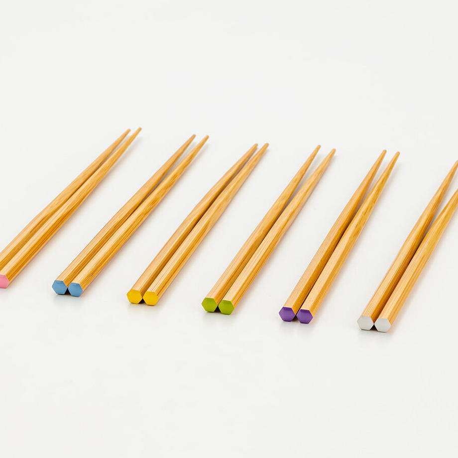 熊本県南関町の竹のお箸を作っているヤマチクさんの六角竹箸 23cmです。 ヤマチクさんは熊本・福岡の山奥から刈り取った純国産の天然竹から「竹の箸」だけを作っています。 人の手で一本一本刈り取って削り作られた竹箸は、軽くてしなりのある丈夫なお箸です。 【商品について】 六角のお箸は手や指に馴染みやすく、さらに卓上や器の上でも転がりにくく安定しています。 箸先は四角く仕上げてつまみやすく。 ヤマチクの技術力ならではのデザインです。 お箸本体は竹の質感を活かし、 頭の部分にカラフルな6色を色付け。 色違いを家族で使えるお箸です。 【お箸の長さ】23cm ※木目や風合いには個体差がございます。その旨ご了承くださいませ。 使用不可:食器洗浄機・乾燥機・電子レンジなど 表面塗装:アクリル塗装 材質:純国産天然竹 MADE IN JAPAN
